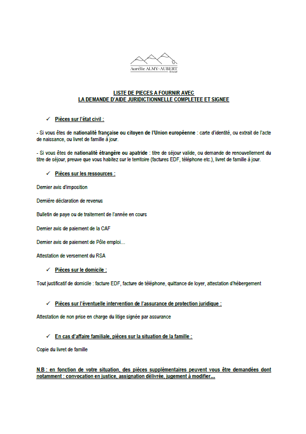 Maître Aurélie ALMY-AUBERT accepte de travailler avec l’aide juridictionnelle et l’assurance de protection juridique.